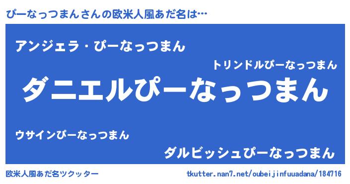 | 男性向けラノベタイトル風あだ名 | 『おまえをオタクにしてやるから、俺をぴーなっつまんにしてくれ! 』 |