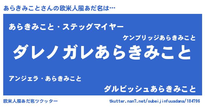 | ヘコむあだ名 | 『あらきみこと(苦笑)』『あらぷりん』 |