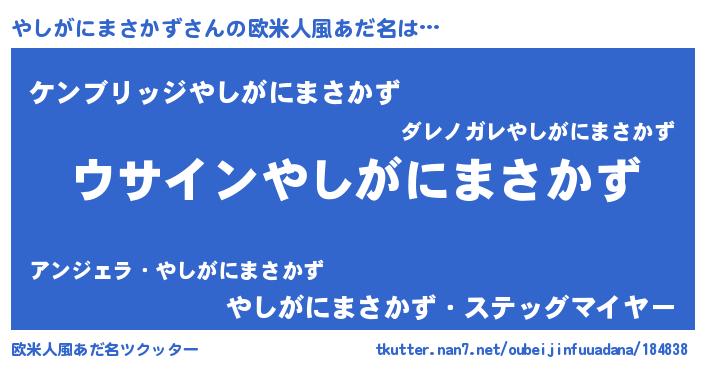 | 男性向けラノベタイトル風あだ名 | 『やしがにまさかずの嫁は女の子じゃないと思った?』 |