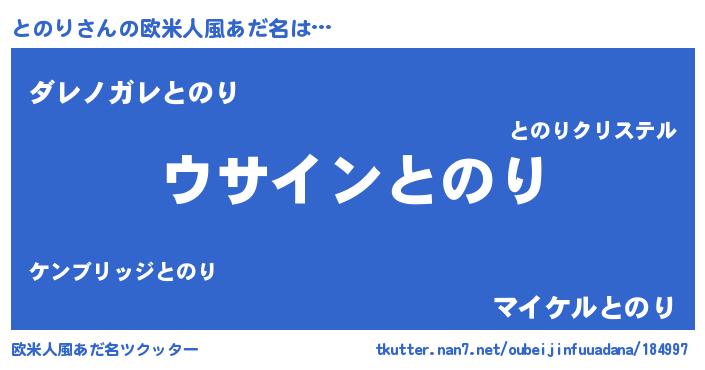 | 胡散臭い通販商品みたいなあだ名 | 『信頼と実績のサプリメント…その名も「とのり」』 |