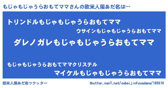 | 男性向けラノベタイトル風あだ名 | 『魔弾の王ともじゃもじゃうらおもてママ』 |