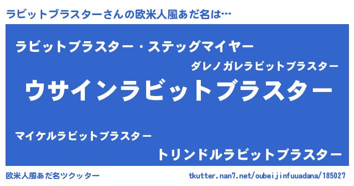 | 男性向けラノベタイトル風あだ名 | 『ラビットブラスターの嫁は女の子じゃないと思った?』 |
