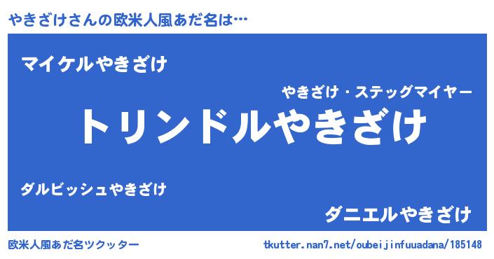 | 男性向けラノベタイトル風あだ名 | 『やきざけ~年齢イコール彼女いない歴の魔法使い~』 |