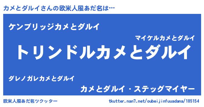 | 男性向けラノベタイトル風あだ名 | 『転生したらカメとダルイだった件』 |