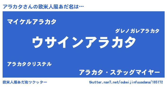 | 意味不明あだ名 | 『とにかく怪しいアラカタ』 |