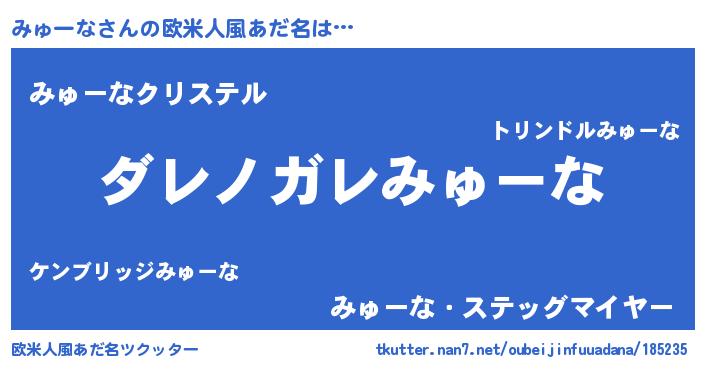 | 男性向けラノベタイトル風あだ名 | 『魔弾の王とみゅーな』 |