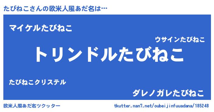 | 女子向けラノベタイトル風あだ名 | 『たびねこの玉の輿計画!』 |