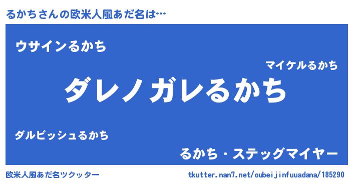 | 男性向けラノベタイトル風あだ名 | 『この素晴らしい世界にるかちを!』 |