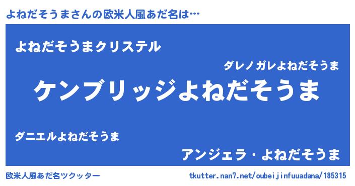 | 男性向けラノベタイトル風あだ名 | 『魔法科高校のよねだそうま』 |