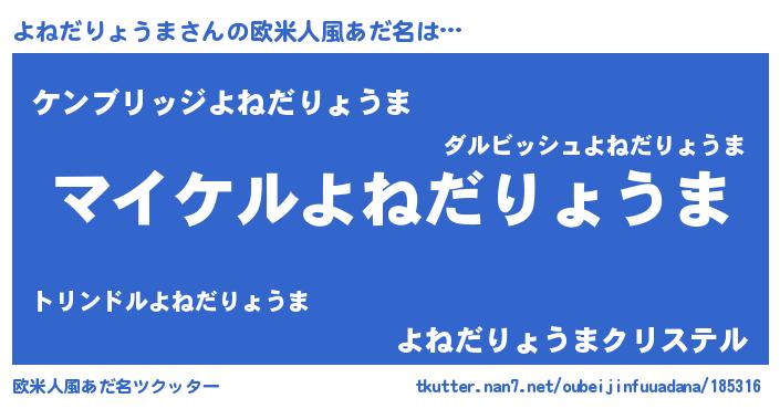 | 男性向けラノベタイトル風あだ名 | 『ヨネダリョウマアートオンライン』 |