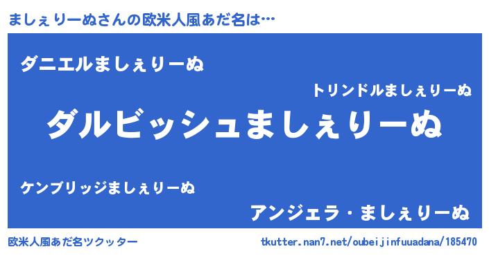 | 男性向けラノベタイトル風あだ名 | 『ましぇりーぬという概念が存在しない退屈な世界 』 |