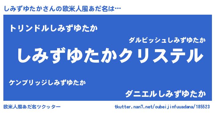 | 女子向けラノベタイトル風あだ名 | 『しみずゆたかの雑貨屋さん』 |