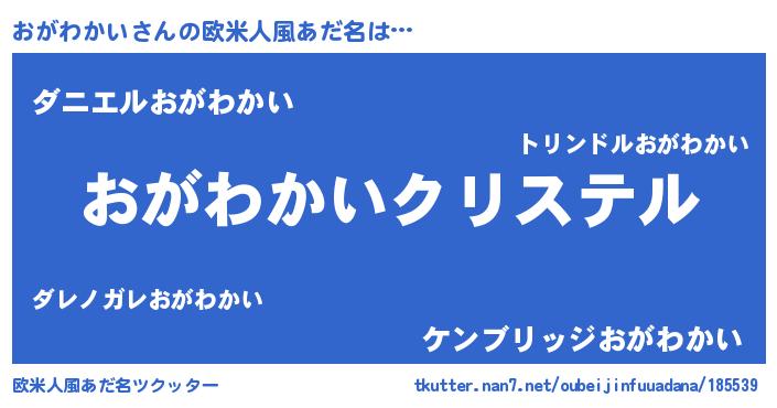 | 女子向けラノベタイトル風あだ名 | 『おがわかいの婚約者』 |