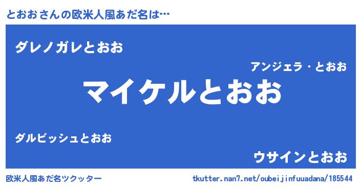 | 男性向けラノベタイトル風あだ名 | 『トオオアートオンライン』 |