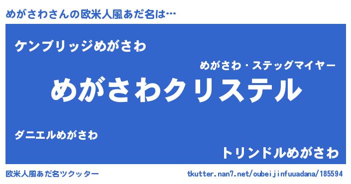 | 女子向けラノベタイトル風あだ名 | 『めがさわの雑貨屋さん』『闇のめがさわ』 |