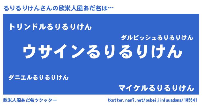 | 男性向けラノベタイトル風あだ名 | 『ダンジョンにるりるりけんを求めるのは間違っているだろうか』 |