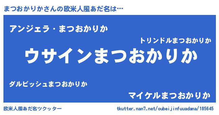 | 女子向けラノベタイトル風あだ名 | 『まつおかりかの卵を拾いまして』 |