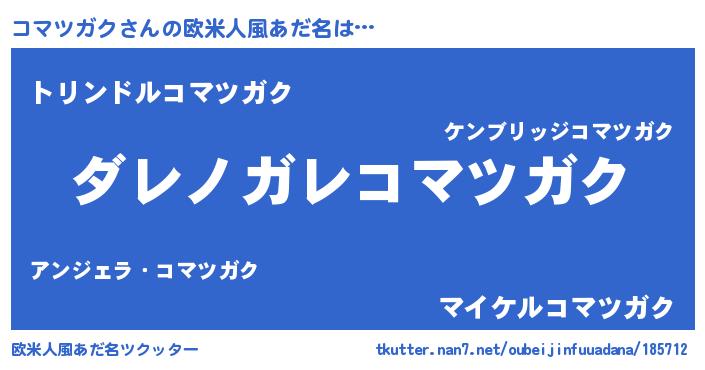 | 男性向けラノベタイトル風あだ名 | 『この素晴らしい世界にコマツガクを!』 |