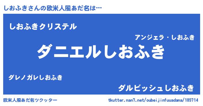 | 男性向けラノベタイトル風あだ名 | 『おまえをオタクにしてやるから、俺をしおふきにしてくれ! 』 |