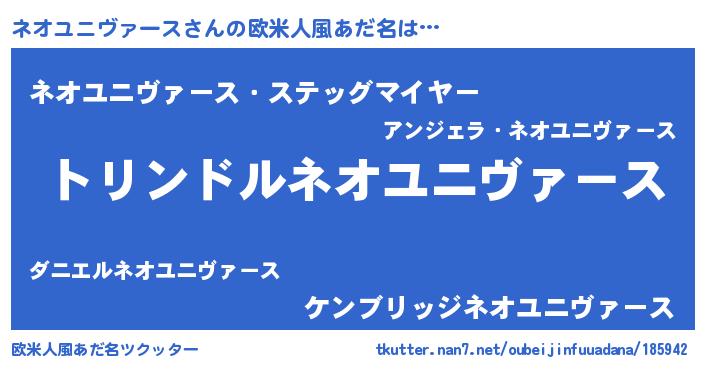 | 男性向けラノベタイトル風あだ名 | 『ネオユニヴァーススレイヤー』 |
