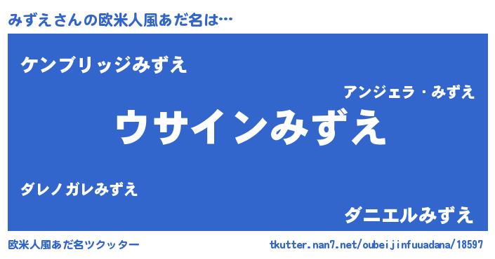 | 男性向けラノベタイトル風あだ名 | 『みずえの嫁は女の子じゃないと思った?』 |