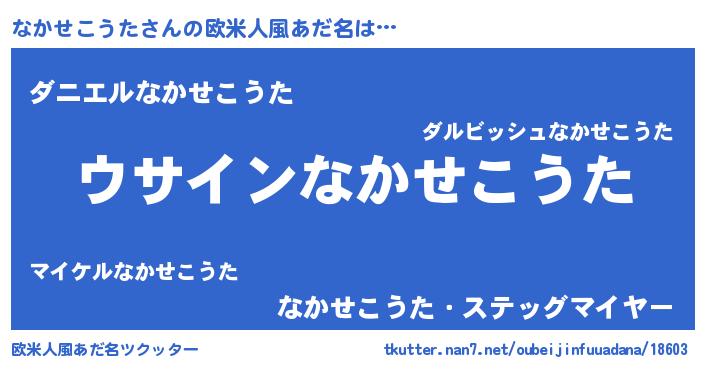 | 男性向けラノベタイトル風あだ名 | 『なかせこうたの嫁は女の子じゃないと思った?』 |