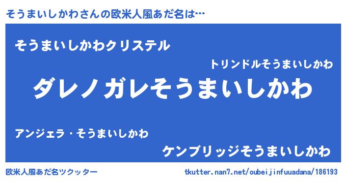 | 男性向けラノベタイトル風あだ名 | 『この素晴らしい世界にそうまいしかわを!』 |