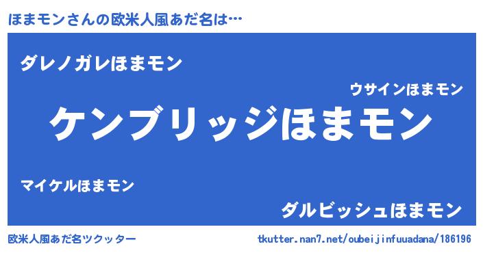 | 男性向けラノベタイトル風あだ名 | 『Re:ほまモンから始める異世界生活』 |