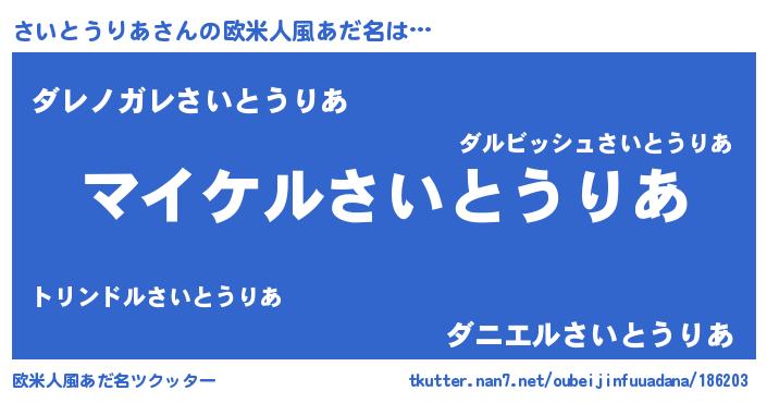 | ヘコむあだ名 | 『さいにゅー』『さいとうりあ(遠い目)』 |
