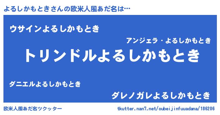 | 男性向けラノベタイトル風あだ名 | 『転生したらよるしかもときだった件』 |