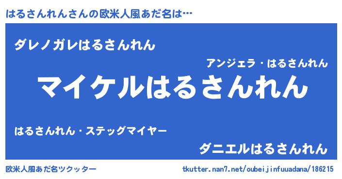 | 男性向けラノベタイトル風あだ名 | 『ハルサンレンアートオンライン』 |