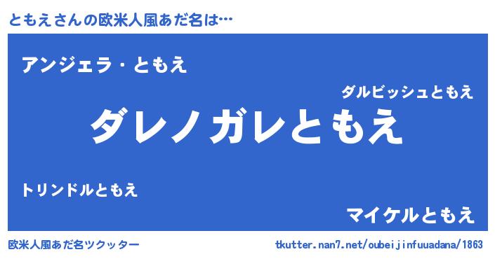 | 男性向けラノベタイトル風あだ名 | 『この素晴らしい世界にともえを!』 |