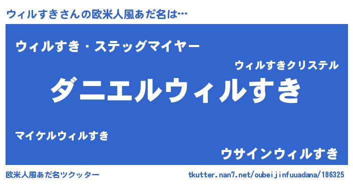 | ヒーロー風カッコイイあだ名 | 『正義の使者ウィルすき』『幻影騎士ウィ』 |