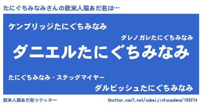 | 男性向けラノベタイトル風あだ名 | 『おまえをオタクにしてやるから、俺をたにぐちみなみにしてくれ! 』 |