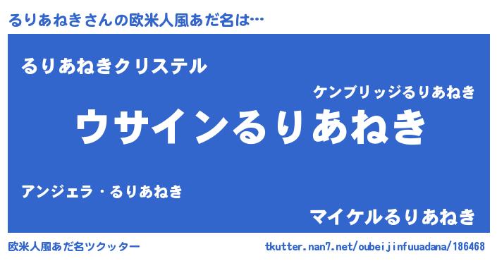 | 意味不明あだ名 | 『とにかく怪しいるりあねき』 |