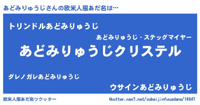 | 意味不明あだ名 | 『あどみりゅうじフォーエバー』 |