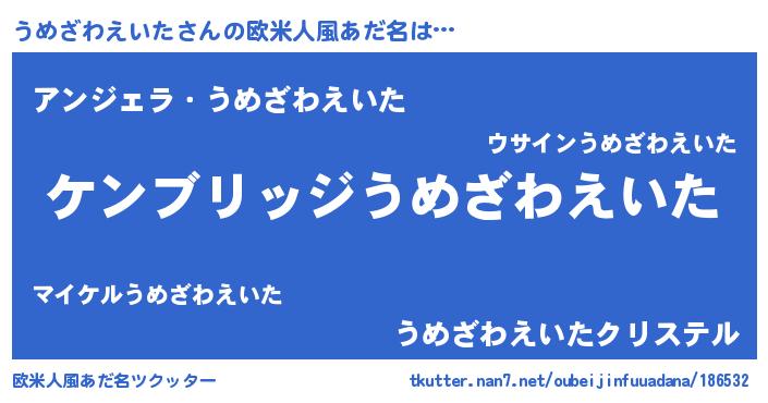 | 男性向けラノベタイトル風あだ名 | 『Re:うめざわえいたから始める異世界生活』 |