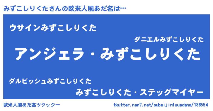 | 男性向けラノベタイトル風あだ名 | 『みずこしりくたに滅ぼされるだけの簡単なお仕事です』 |