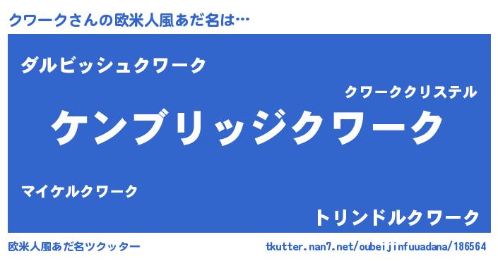| 女子向けラノベタイトル風あだ名 | 『闇のクワーク』『クワークの雑貨屋さん』 |