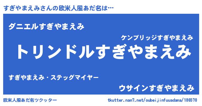 | 男性向けラノベタイトル風あだ名 | 『転生したらすぎやまえみだった件』 |