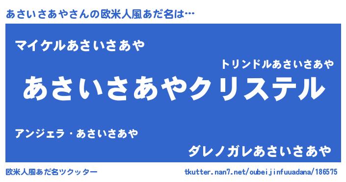 | 女子向けラノベタイトル風あだ名 | 『あさいさあやの雑貨屋さん』 |
