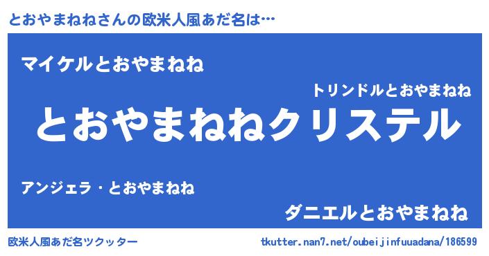 | ファンタジー風あだ名 | 『エターナルトオヤマネネー』 |