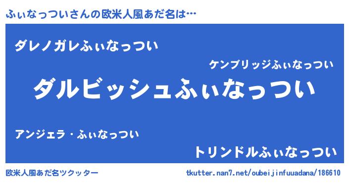 | 男性向けラノベタイトル風あだ名 | 『ふぃなっついという概念が存在しない退屈な世界 』 |