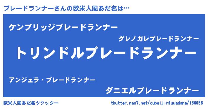 | 男性向けラノベタイトル風あだ名 | 『ブレードランナー~年齢イコール彼女いない歴の魔法使い~』 |