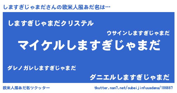 | 男性向けラノベタイトル風あだ名 | 『シマスギジャマダアートオンライン』 |