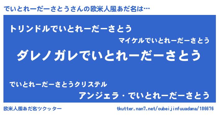 | 意味不明あだ名 | 『住所不定無職でいとれーだーさとう(84歳)』 |