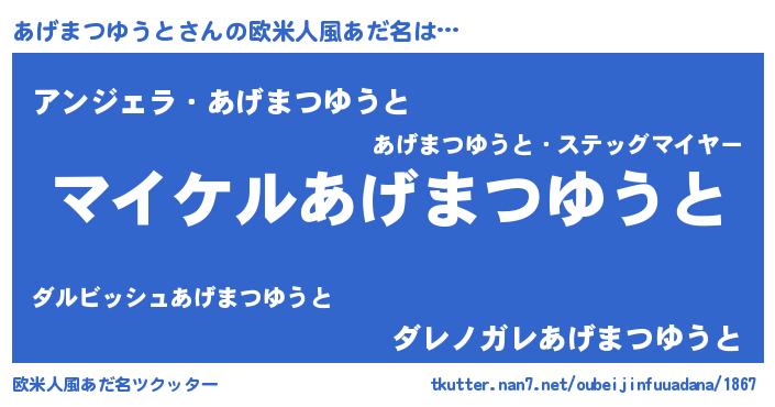 | 男性向けラノベタイトル風あだ名 | 『あげまつゆうとの憂鬱』 |