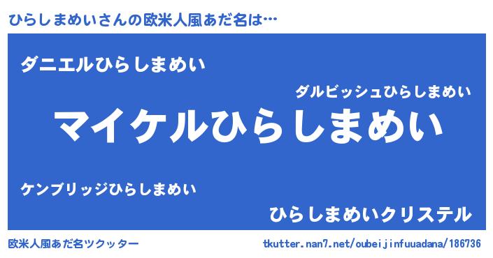 | 男性向けラノベタイトル風あだ名 | 『ヒラシマメイアートオンライン』 |