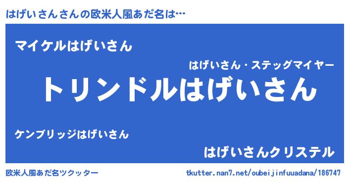 | 男性向けラノベタイトル風あだ名 | 『ハゲイサンスレイヤー』 |