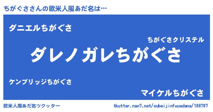 | 意味不明あだ名 | 『住所不定無職ちがぐさ(68歳)』 |